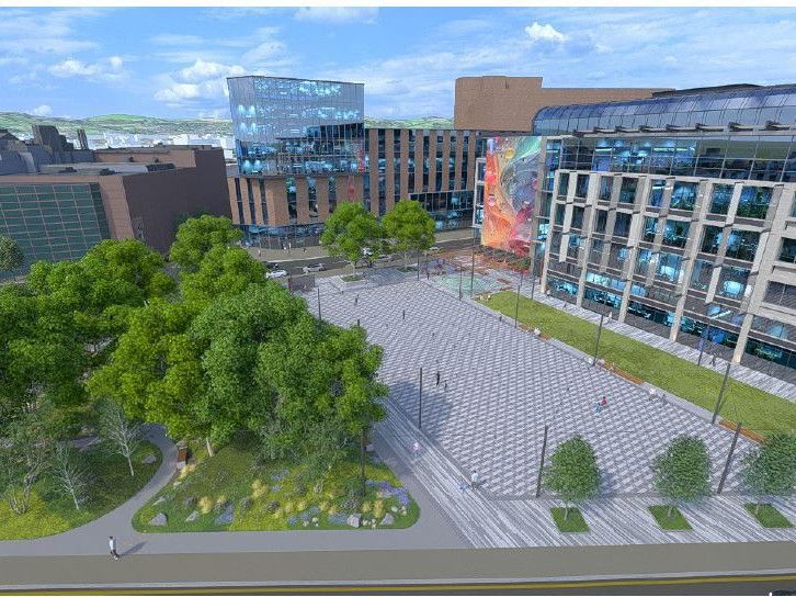 The design will feature a public plaza for small events, an urban forest/woodland garden, and a children's play area with digital art displays. The project will enhance the area with new lighting, planting, seating, and other public realm improvements. Additionally, a memorial to commemorate the World War II Belfast Blitz will be installed in collaboration with the Northern Ireland War Memorial Museum.